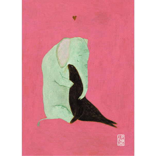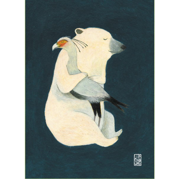 Geprint op Biotop 300 gr papier. Acryl illustraties.
